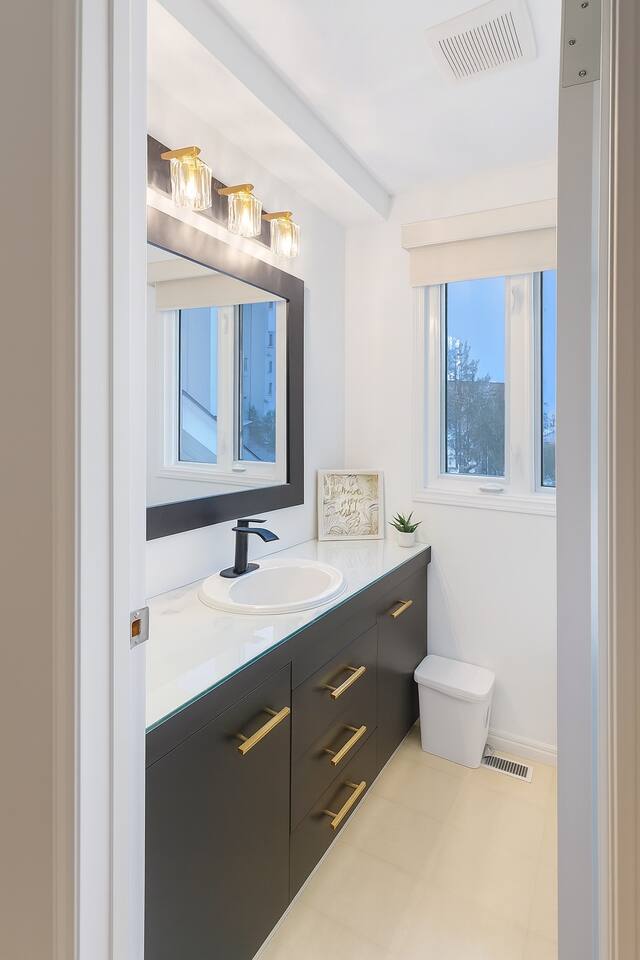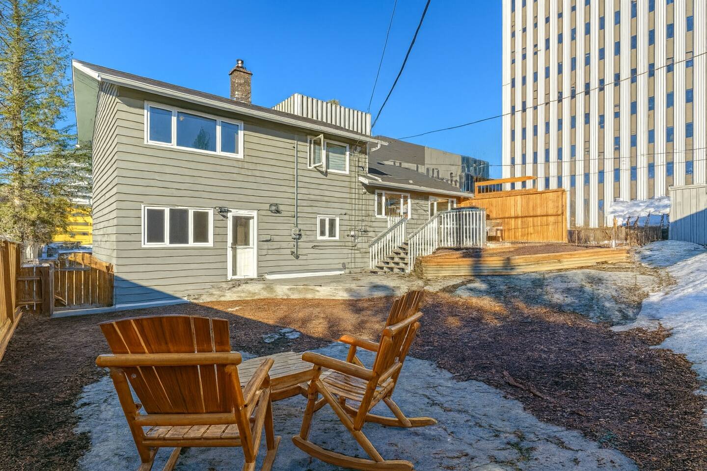 Room #3 - Elegant private bedroom in a historic downtown Yellowknife home, combining timeless charm with modern comfort. Steps from City Hall, Somba K’e Park, fine dining, shopping, and premier Aurora tour operators. Enjoy privacy and security indoors, modern appliances, stylish furnishings, plus a welcoming outdoor space with stylish seating, gas BBQ, and wood-burning fire pit. Perfectly suited for business, adventure, or leisure, this retreat offers the ideal base for your Yellowknife stay.